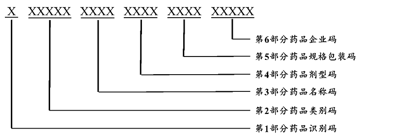 第1部分:西药药品识别码,用1位大写英文字母“X”表示。